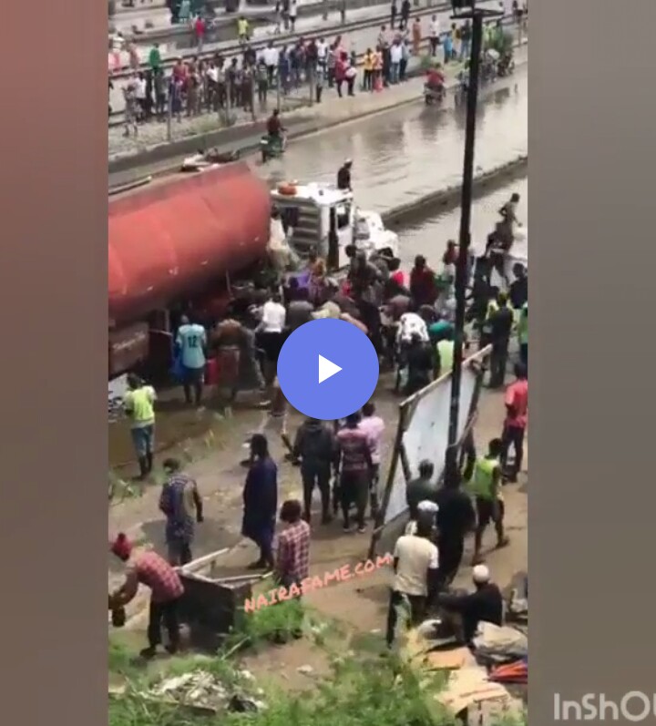 Many Fight and Scoop Fuel As Petrol Tanker Accidentally Losing in Mile 2, Lagos State…