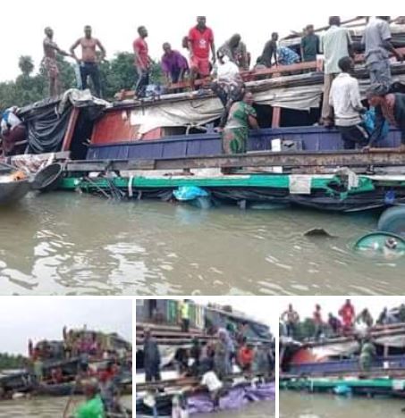 The wooden boat was said to be conveying passengers and goods before it sank in the middle of the river.