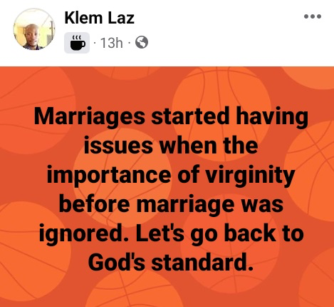 “Marriages started having issues when the importance of virginity before marriage was ignored. Let’s go back to God’s standard.” he said on Tuesday, December 2022.