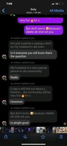 Chats where the lady told the married man about her husband, warning him to be careful, were also shared.