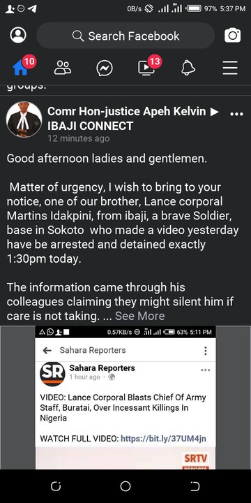 Lance corporal martins idakpini made a bold stand in calling out the Army chief for incessant killing, he was applauded for his courage, but report has it now that he has been arrested and detained.