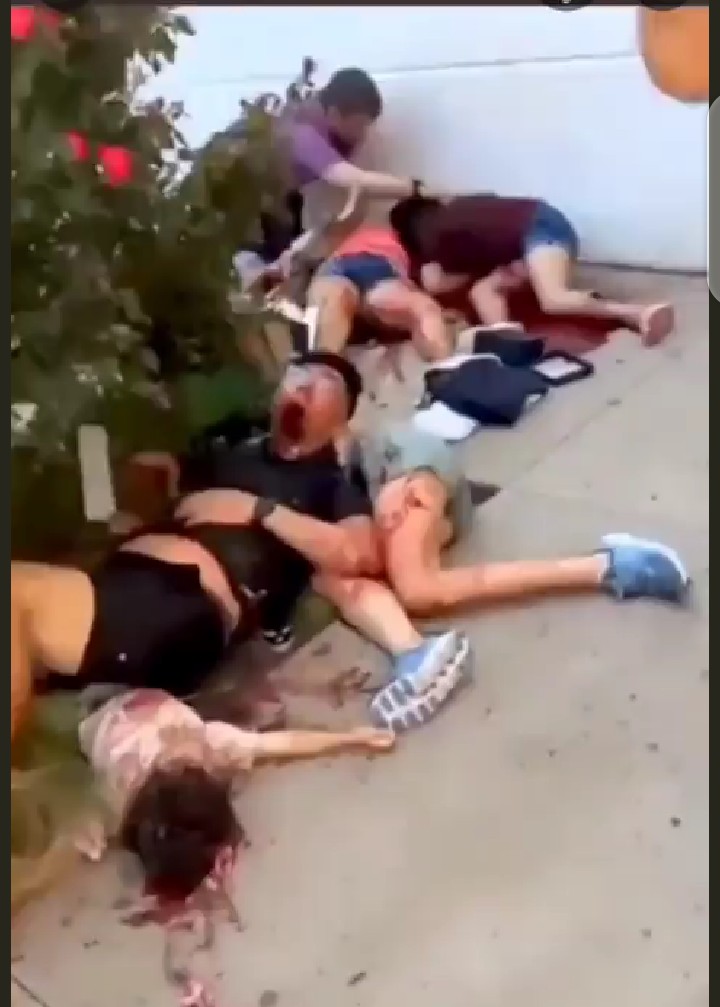 Aerial footage from the scene showed shoppers being evacuated from the stores, many with their arms raised in the air.