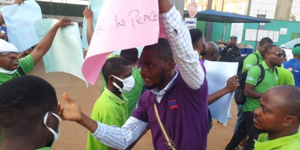 The protesting workers were seen at the front of the company’s plant in the Agbara community of Ogun State, demanding immediate reinstating of their sacked colleagues.