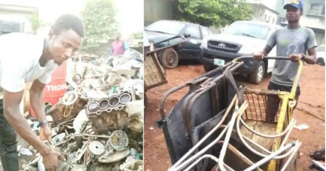 -He chose to do menial jobs rather than stay idle, waiting for a white collar job. He recently posted on his Facebook page, his pictures carrying some scrap and copies of his certificates saying ‘It’s better to die on your feet than to live on your knees, I would rather be dirty and satisfied than clean and hungry’.