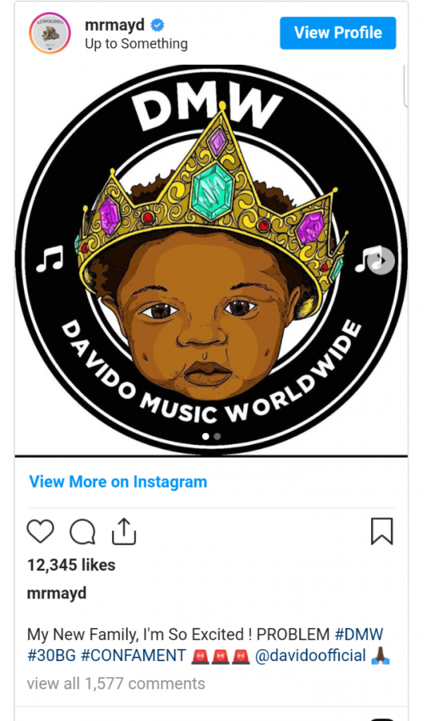 Nigerian singer, songwriter, and dancer, Akinmayokun Awodumila, popularly known as May D, has joined Davido Music World Wide, DMW label.