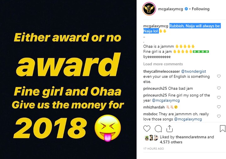 Either award or no award, Fine girl and Ohaa give us money for 2018. Rubbish, Naija will always be Naija lol