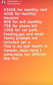 In a post shared on his Instastories, MC Morris listed some of the items he pays ”exorbitant fees” for.