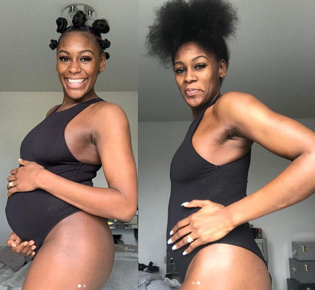 The proud mother-to-be took to Instagram to share these baby bump photos while expressing her delight as regards to how she is adjusting to the changes in her body.