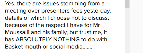 Amin Mousalli is the man OAP Freeze says he has respect for and for that, won’t disclose the details of the fallout the both of them had over presenters fees yesterday.
