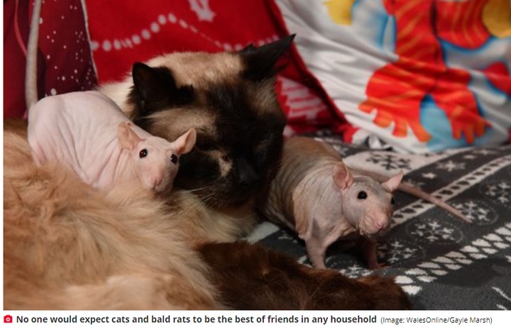 His house, in Llanelli, is also filled with bald rats, lizards, cockroaches, frogs and cats and dogs. Geraint, with wife Yolande, have so many animals, they spend several hours a day cleaning up after them.