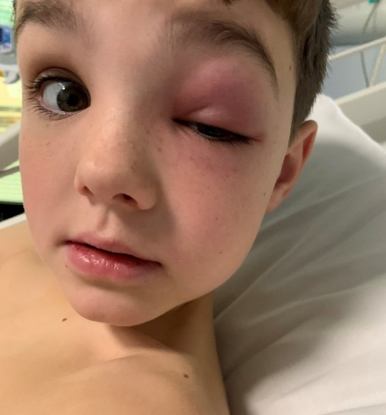 His eye completely closed up during the terrifying ordeal after he was diagnosed with orbital cellulitis – a skin infection that some scientists have linked to the virus.