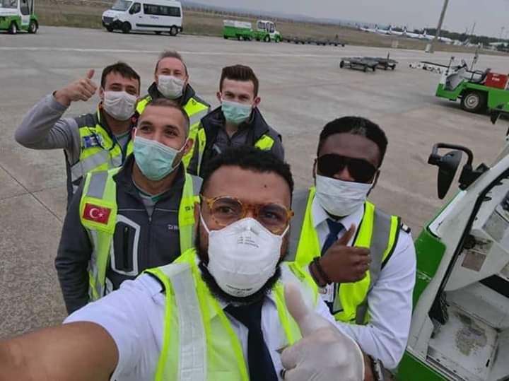 Meet the Air Peace crew that flew in the medical supplies from Turkey on Sunday… Even though we’re ‘off-air’, we must play our part in fighting COVID-19.