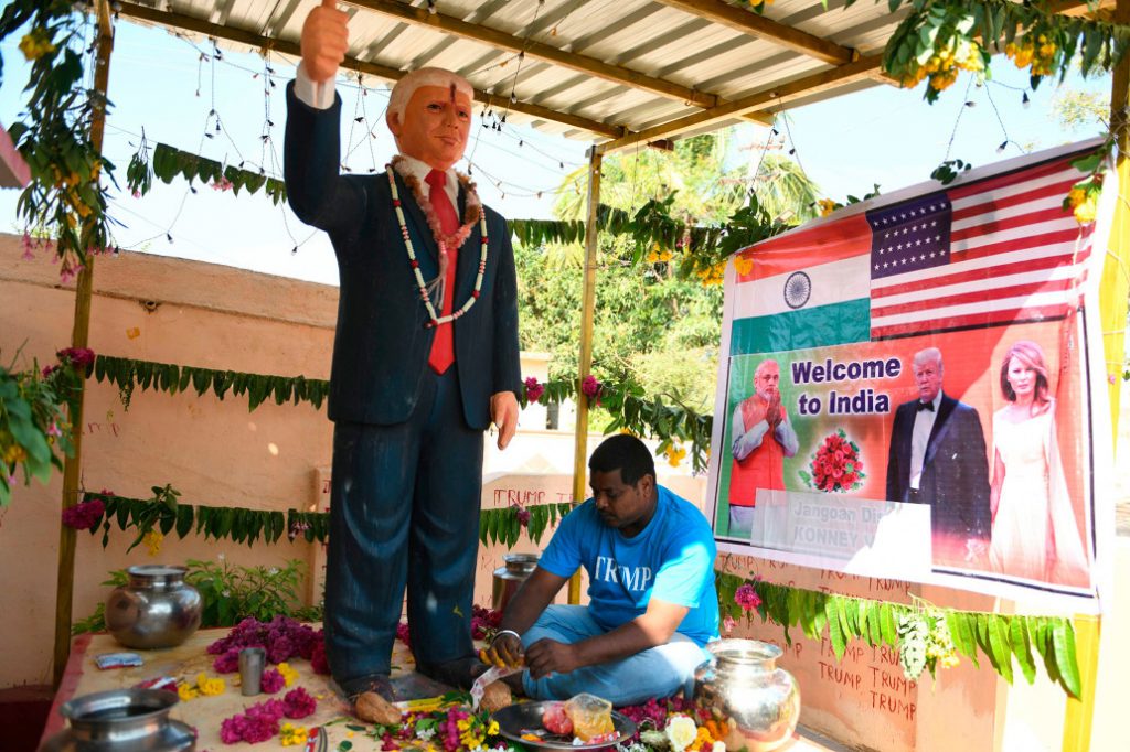 According to New York Post, an Indian man identified as Bussa Krishna is so convinced President Trump is his “god,” he has a life-size statue as a shrine in his garden — and offers him daily prayers.