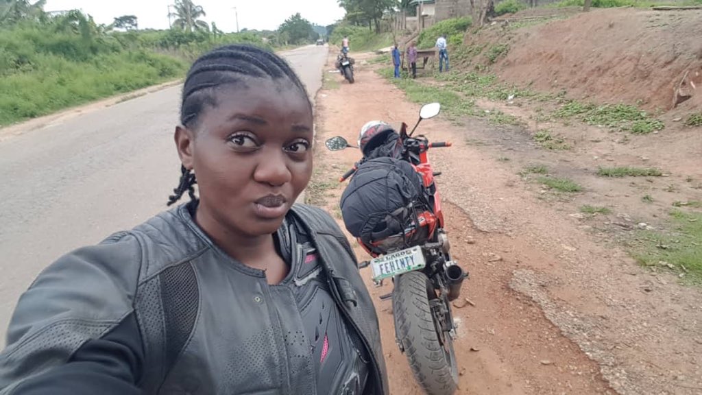 Fehintoluwa Okegbenle, a Nigerian lady has taken to social media to celebrate her win after successfully completing a trip from Lagos to Abuja on a bike.