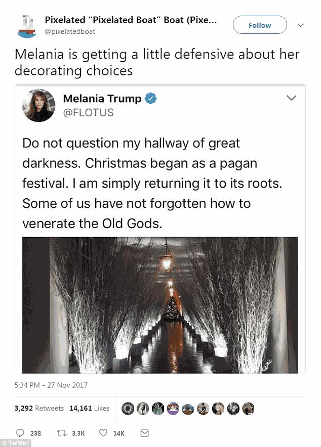 Twitter has gone into meltdown over the White House’s ‘creepy’ Christmas decorations which many say would not look out of place in a horror movie.