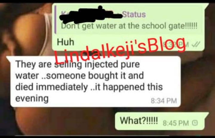 Messages being shared by students of LASU in a WhatsApp group warns students to avoid drinking sachet water at the school’s gate. A voice note was also shared to the group issuing the same warning.