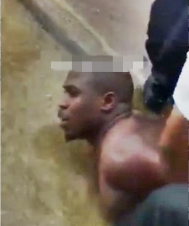 The Nigerian man clad only in shorts was heard shouting and muttering but the sentences were inaudible. A security guard was seen trying to control the situation.