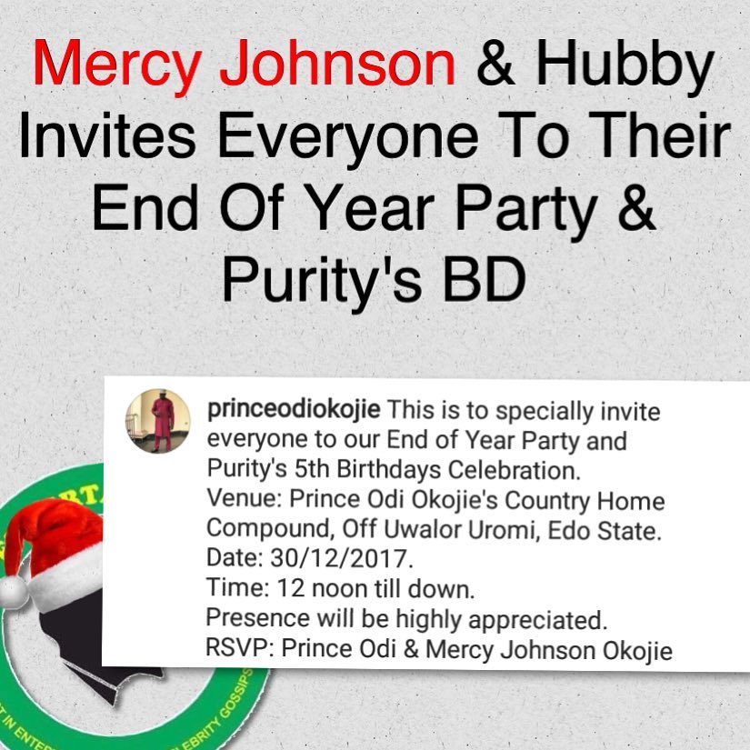 Mercy Johnson & Hubby Invites Everyone to Their End of Year Party & Purity’s 5th Birthdays Celebration