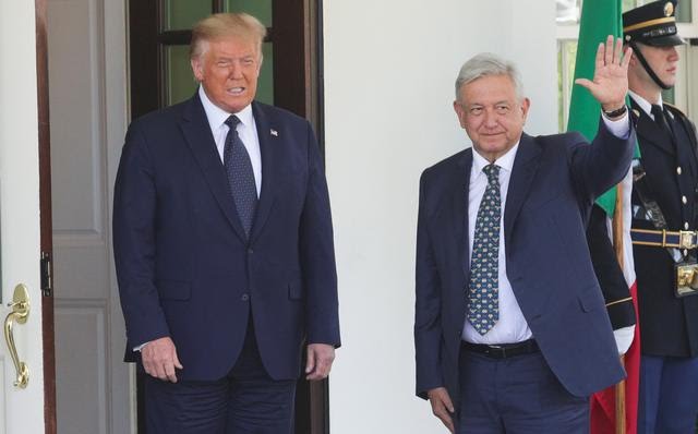 Mindful of the coronavirus pandemic, which is still surging in Mexico and the United States, the two did not shake hands as they met outside the White House. Neither wore face masks.
