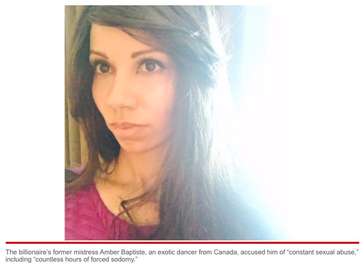 But things came to a crashing halt in 2016 when his former mistress Amber Baptiste, an exotic dancer from Canada, accused him of “constant sexual abuse,” including “countless hours of forced sodomy,” court papers say. He also demanded that she refer to him as “king” and “emperor,” according to the filings. In 2012 Baptiste said, she underwent surgery for a ruptured anal canal after Goguen “forcibly sodomized her and left her bleeding and alone on the floor of a hotel room in a foreign country,” court papers claimed.