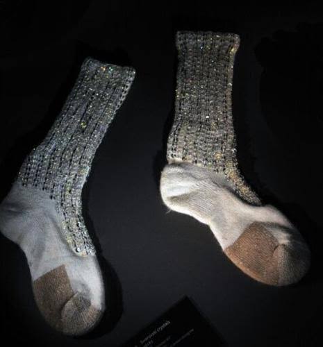 Decades later, the sock is seen covered in stains and the rhinestones adorning it have yellowed with age, in a picture posted on the website.