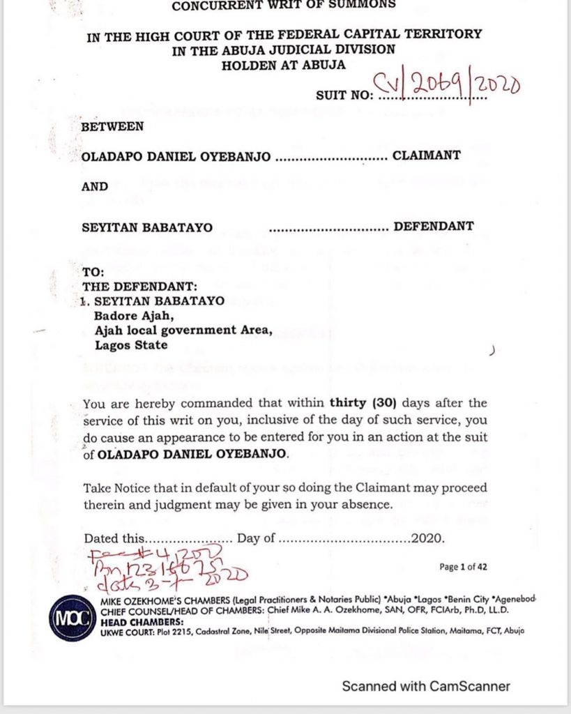Dbanj procured the services of controversial and foremost Senior Advocate of Nigeria, Mike Ozekhome (SAN), to slam a libel suit of N1.5 billion naira on the Ms. Seyitan, a lady who had accused him of rape.