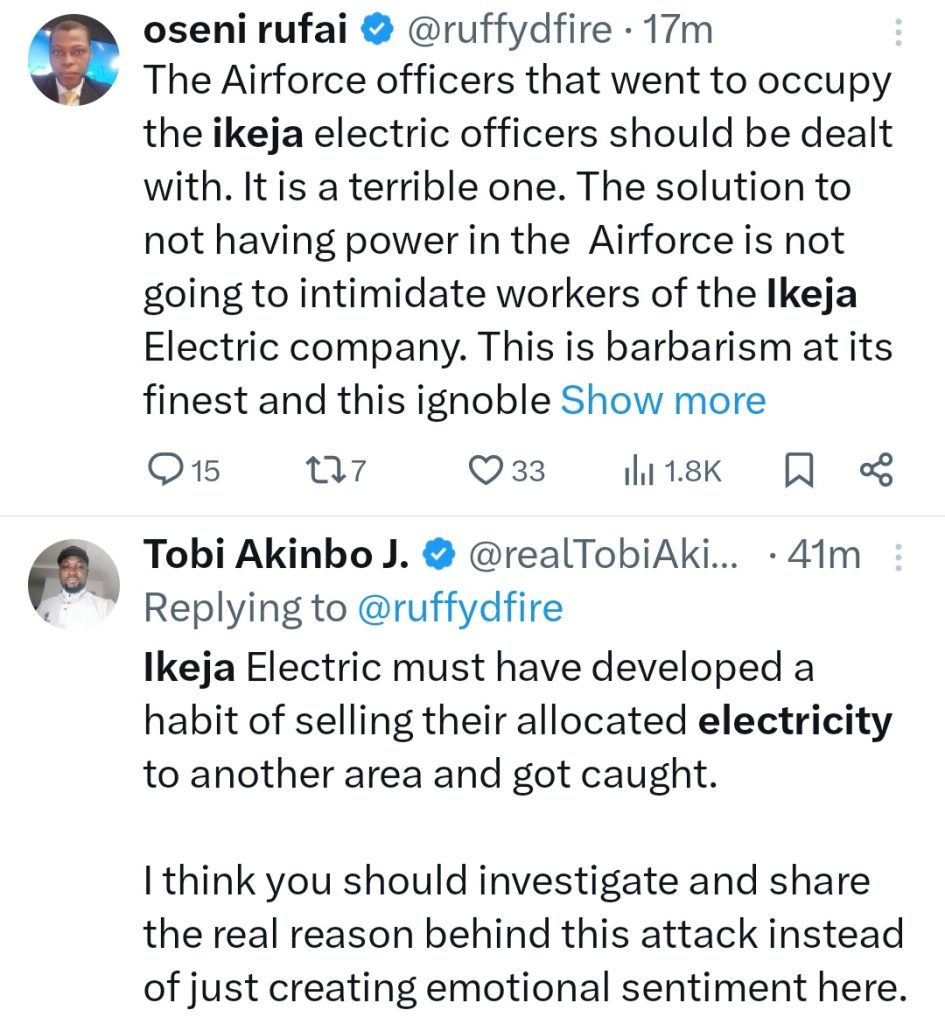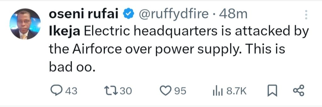 Meanwhile, Nigerians, including media personality Rufai Oseni, have gone on X to condemn the military’s invasion of the electricity distribution company.