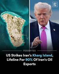Trump said the island’s oil infrastructure was not targeted but may be hit in future strikes, if the Iranian regime doesn’t allow ships to pass through the Strait of Hormuz.