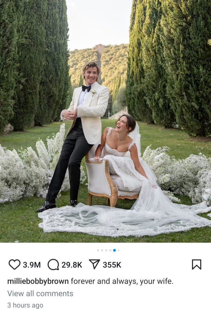 Millie Bobby Brown, 20, and Jake Bongiovi, 22, are sharing a glimpse into their dreamy wedding day.