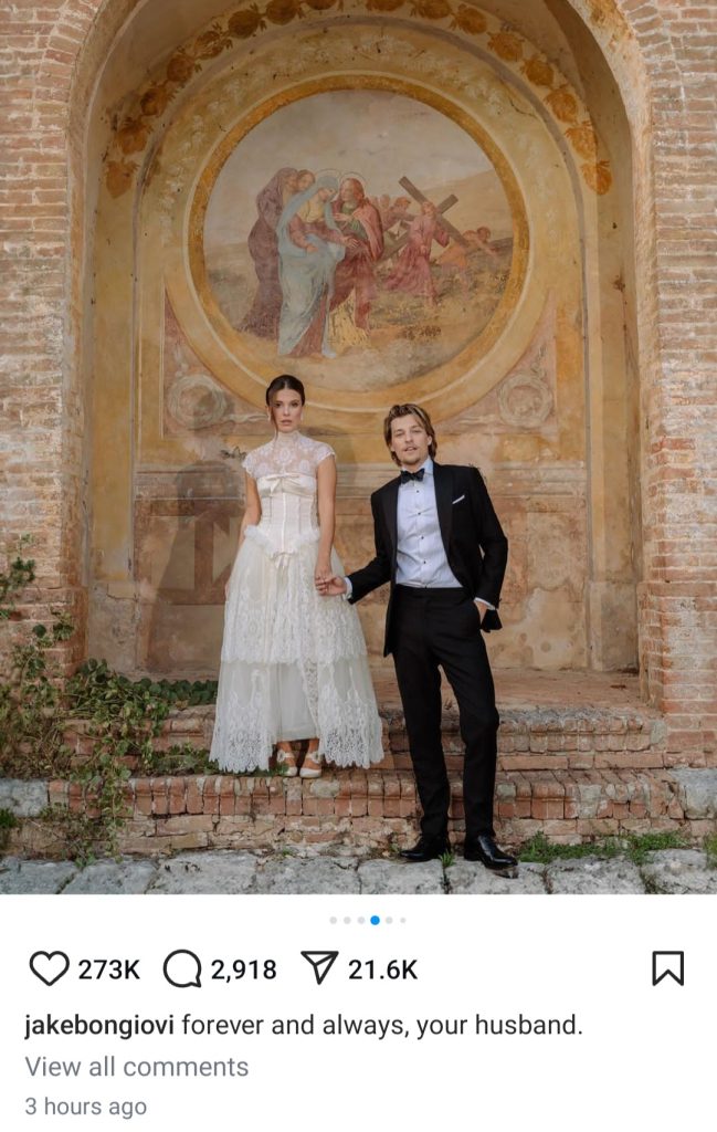 Millie Bobby Brown, 20, and Jake Bongiovi share photos from wedding celebration in Italy - 9jaflaver