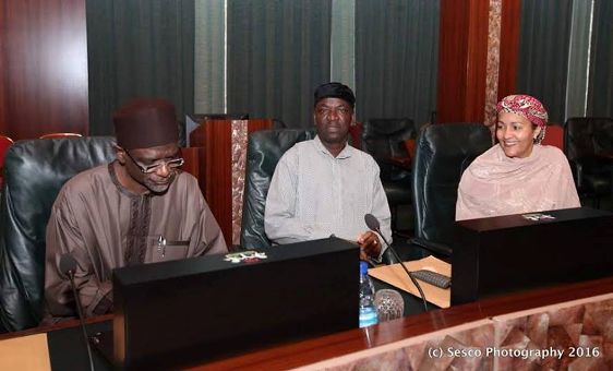 Last week, Secretary to the Government of the Federation, Babachir David Lawal, during his prayers at the Federal Executive council meeting, disclosed that Minister of Education, Adamu Adamu, had severe back pain and so could not attend the FEC meeting. The minister appears to be back in good shape as he is pictured above on the left in brown dansiki at the FEC meeting today June 15th.