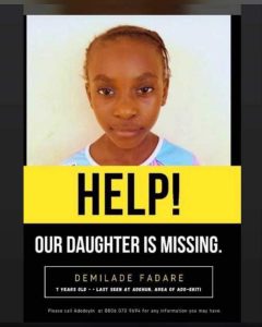 There is serious commotion currently going on in Ekiti state after a seven-year-old girl, Demilade Fadare declared missing yesterday, Monday, December 06 was found dead in a neighbour’s house.