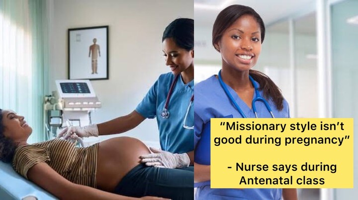 “Missionary style isn’t good during pregnancy, try these styles instead…” – Nurse says during Antenatal class