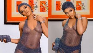 Liquorose, a former Big Brother Naija Shine Ya Eye housemate, set tongues wagging with her see-through dinner dress, which she wore to a party last night.