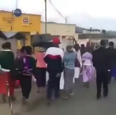 Here is a video showing a bride and her maids carrying battery, speakers and other music sets to a wedding venue in Guinea.