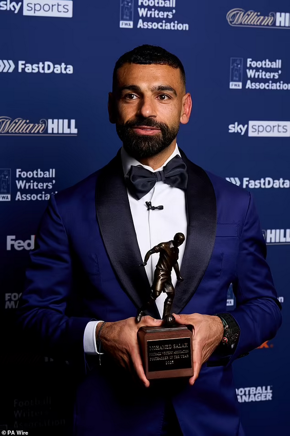 Liverpool superstar, Mohamed Salah, received his 2025 Football Writers’ Association (FWA) Footballer of the Year award on Thursday night.