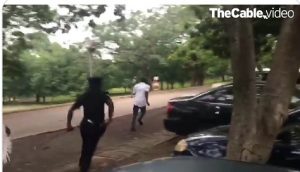 A police officer has been spotted chasing after an Indigenous People of Biafra supporter in Abuja.