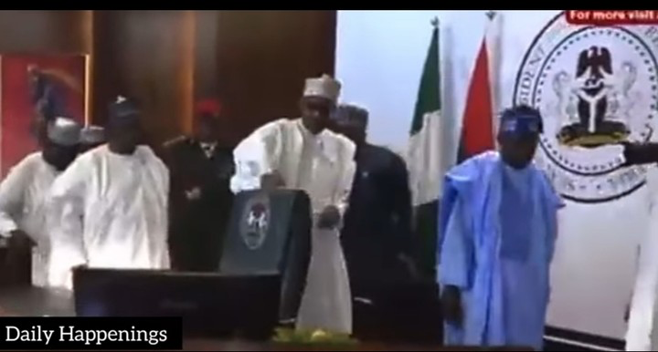 After the inauguration ceremony, former president Muhammadu Buhari was seen tapping the seat.