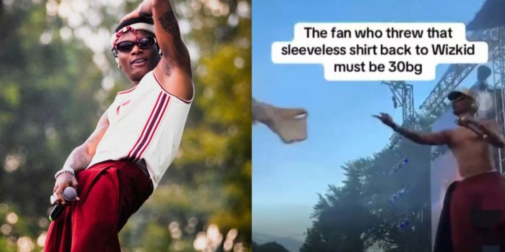 A trending video captures the awkward moment Wizkid throws his shirt into the crowd of concert-goers only for a fan to toss it back at him.