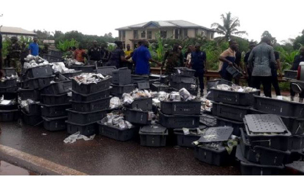 It was learnt that fuel tanker had begun its journey from Tema and was expected to offload in neighbouring Burkina Faso. Money retrieved from the crash site is currently being kept at the Police Divisional Headquarters and reportedly guarded by soldiers, Police and Bank of Ghana security officers.