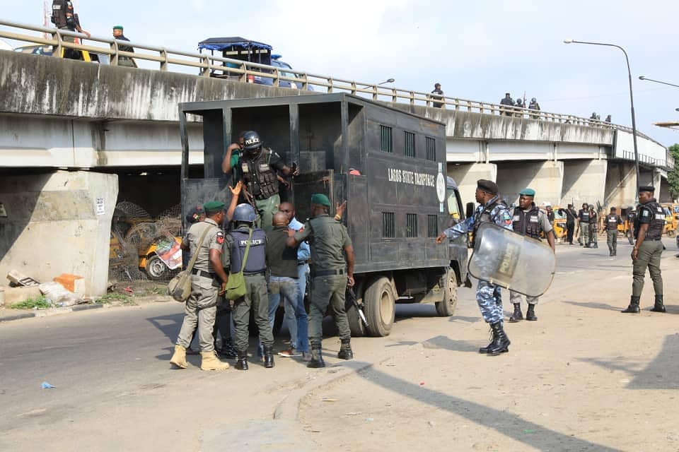 Below are photos of Nigerian Police Force arresting some of the protesters in Lagos State.