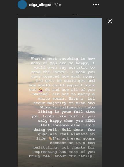 Olga in her reaction expressed her shock and disappointment in the news and especially her followers who were all ‘ecstatic’ and ‘happy’ to hear of the ‘break up’.