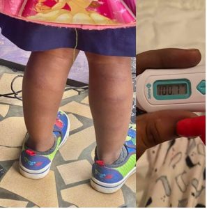 The 3-year-old returned from school with multiple cane marks on her legs. She was also having a fever and they had to get drugs for her.