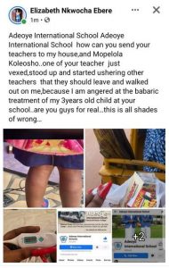 A woman took to Facebook to call out a school after her 3-year-old daughter was mercilessly flogged by a teacher.