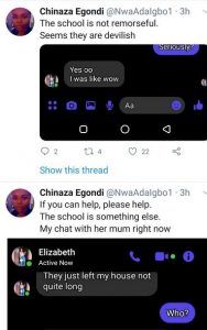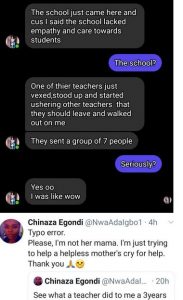 She said the school sent teachers to her house to talk about the incident but the teachers angrily left her house without resolving the issue.