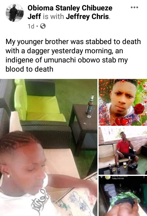 A 23-year-old motorcyclist identified as Ogbonna Chukwuebuka, has allegedly stabbed a young man to death with a dagger in Umunachi community, Obowo Local Government Area of Imo State, NaijaCover Reports.