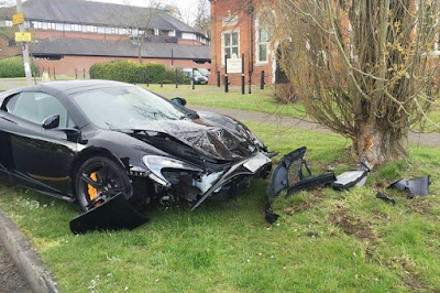 A man accidentally crashed his £200,000 Mclaren supercar few minutes after taking delivery of it at his home. According to his neighbours, the delighted owner of the brand new car was seen happily celebrating with a bottle of champagne as the luxury ride was unloaded at his home. He then decided to take it out for a quick spin, only to be seen crashing into a tree on a nearby road in Hutton, Essex.