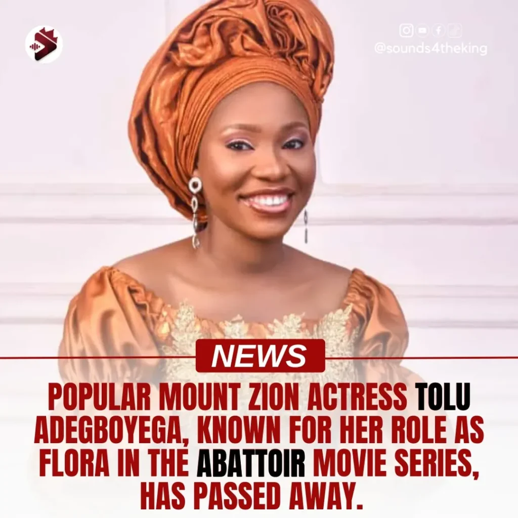 The Nollywood gospel movie industry has lost a shining star. Tolu Adegboyega, known for her powerful role as Flora in the Abattoir movie series, has passed away.