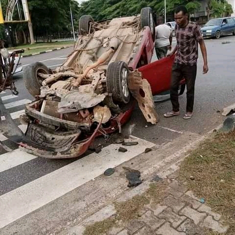 I was involved in a ghastly motor accident early this morning at abuja (before Bannex junction)….I was unconcious when I was pulled out of the red car after a another driver rammed into our car.