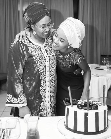 Mrs Aisha Buhari and youngest daughter at her birthday celebration